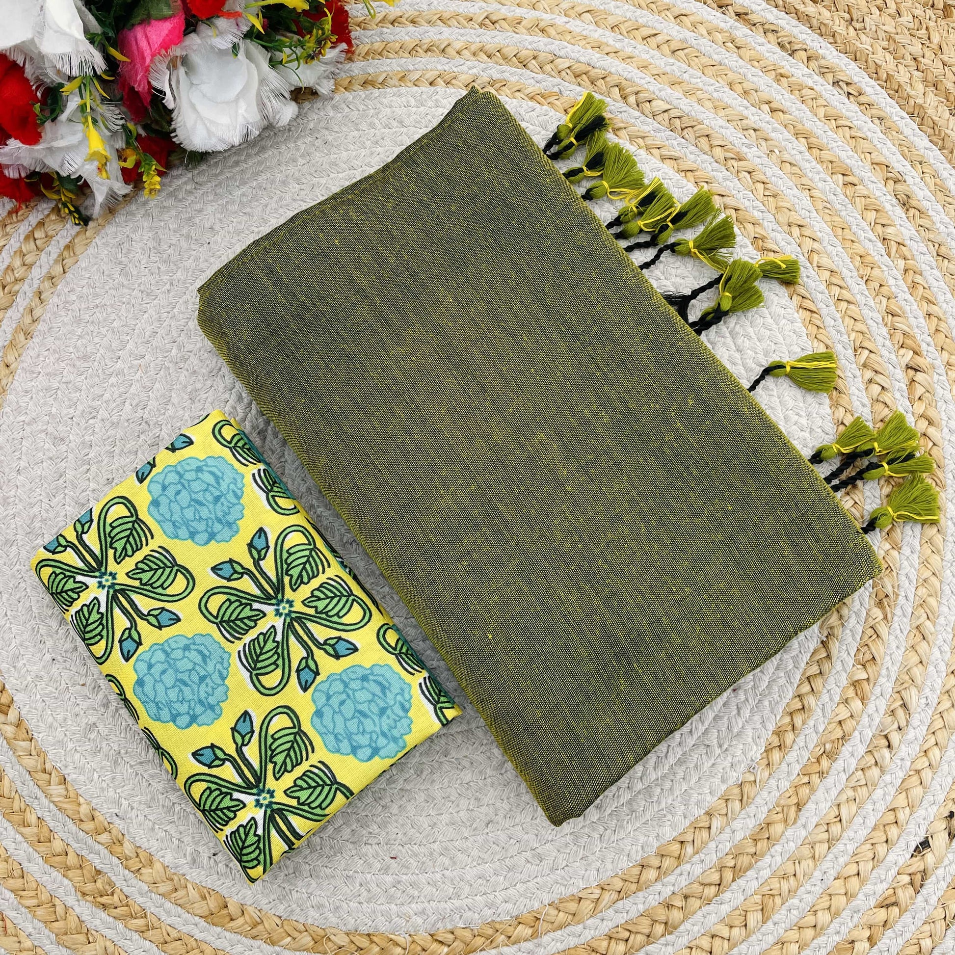 Plain Khadi Cotton Saree with Digital Print Blouse – Elegant & Comfortable Wear