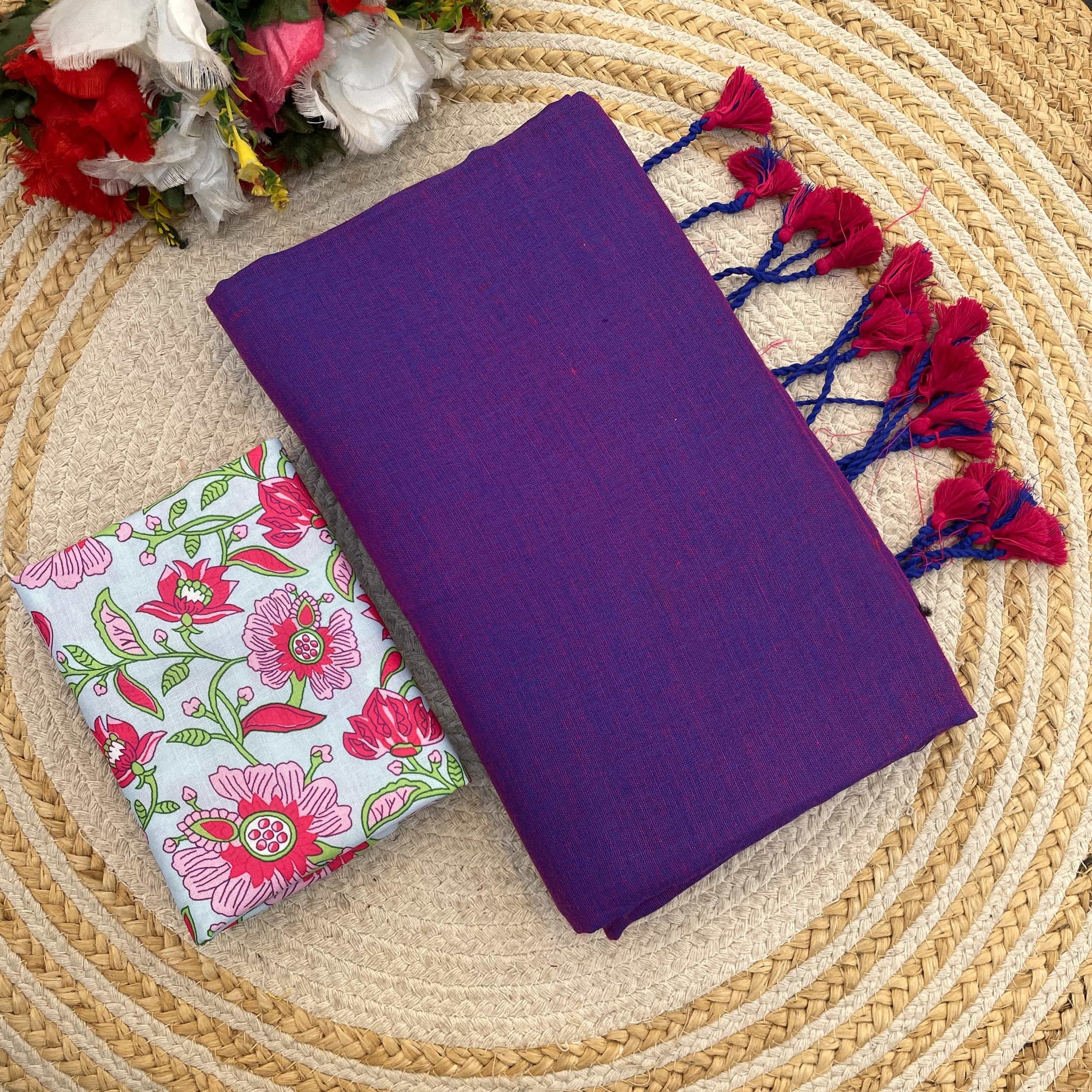 Plain Khadi Cotton Saree with Digital Print Blouse – Elegant & Comfortable Wear