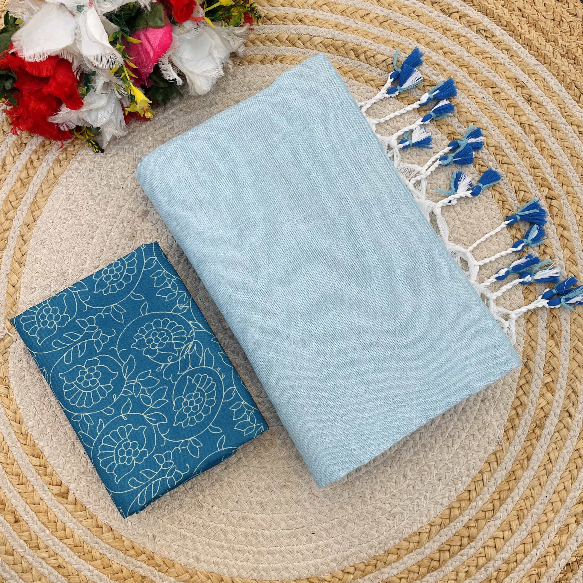 Plain Khadi Cotton Saree with Digital Print Blouse – Elegant & Comfortable Wear