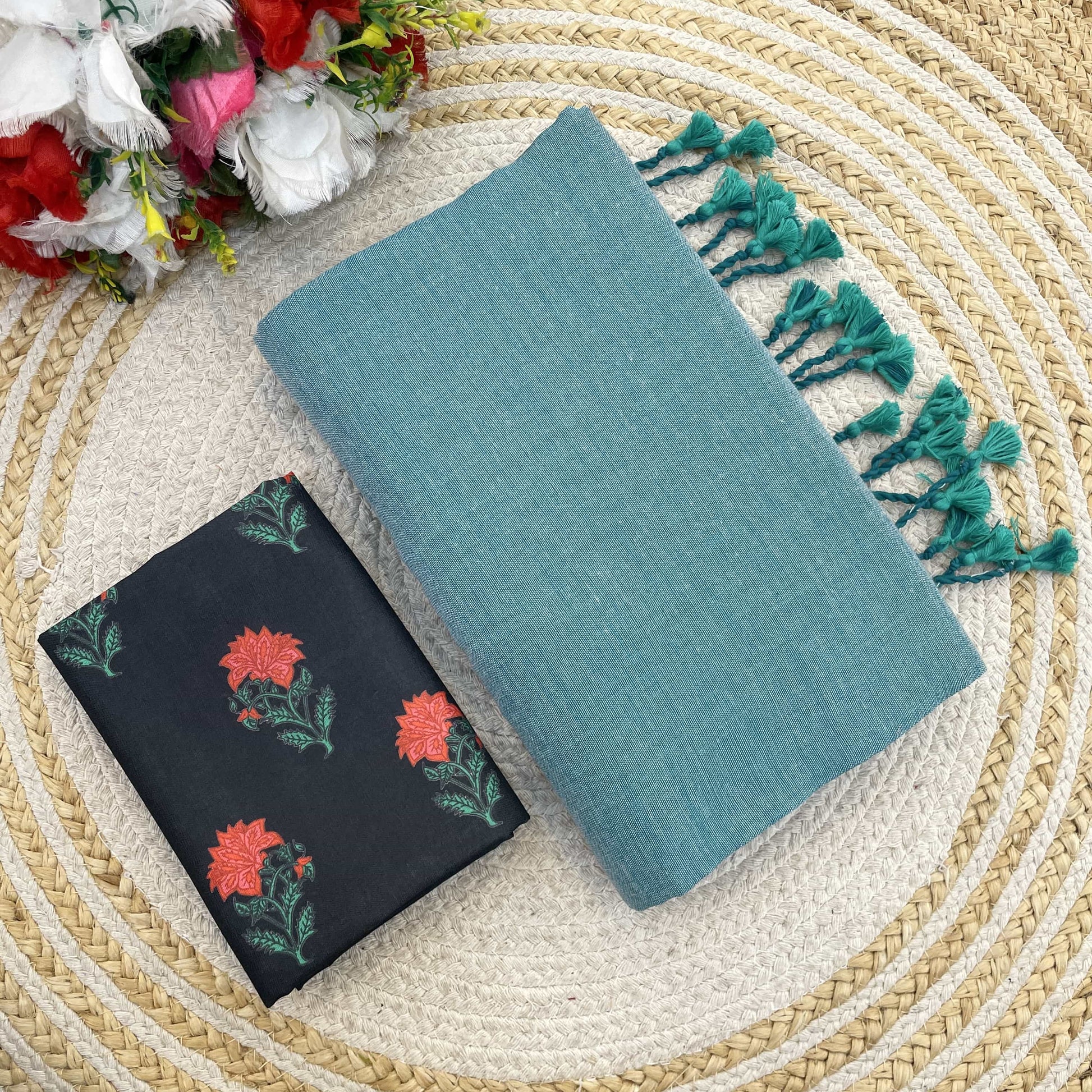 Plain Khadi Cotton Saree with Digital Print Blouse – Elegant & Comfortable Wear